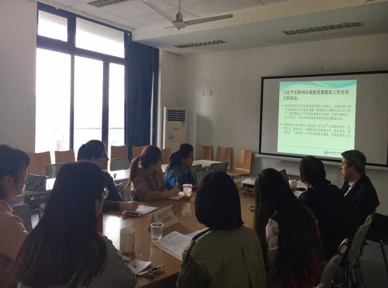 会上,13级辅导员冯建星老师作了主题发言,他结合个人的工作经历和大家分享了学习习近平总书记在全国高校思想政治工作会议上讲话的体会。辅导员们一起学习,认真领悟讲话精神,大家一致表示要理论联系实际,充分发挥基层党组织战斗堡垒作用,坚持党建带团建,团建带班建,做好管理育人、服务育人工作。此外,冯建星老师还系统地阐述了现代大学课堂的三种类型、通识教育理念、教师的三种境界以及学校与企业的文化养成与认同感等内容,鼓励大家积极践行教育工作者的义务,形成自身的育人特色。