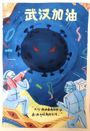 同时,其他学生党员和入党积极分子心拥对武汉疫情的期盼,发挥自身的特长,用海报和书法为武汉加油!