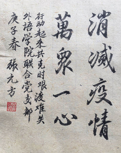 同学们表达祝福的形式很多,但是心意是相通的,希望外语学院师生们行动起来,积极投入抗疫志愿者的行列,以雷锋为榜样,弘扬“一心为公,舍己为人”的精神,在做好自身防护的同时,为抗击疫情献策出力。