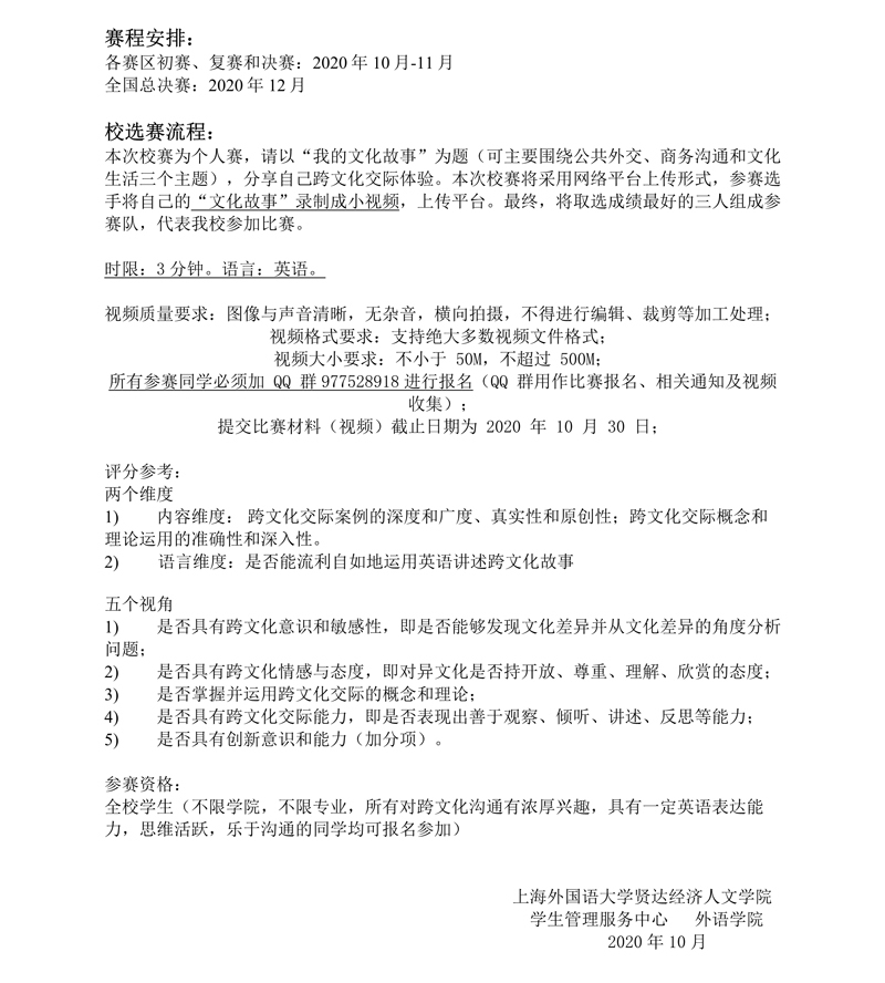 第5届上海市高校跨文化能力大赛上外贤达校赛说明