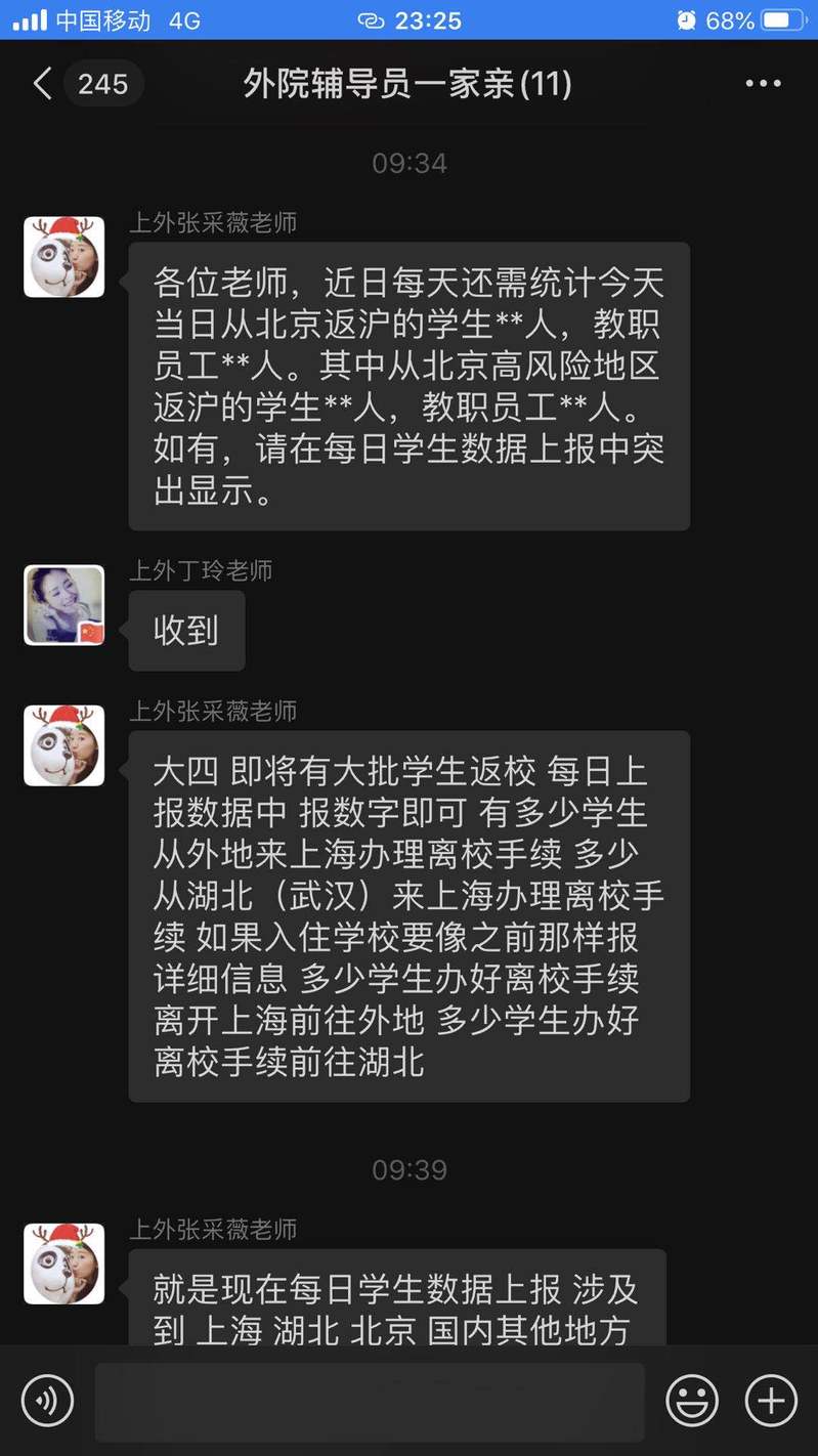 自疫情爆发至现阶段,学院学工口坚持一切以学生为中心的理念,把关注学生的身心健康作为首要工作,每天仔细地统计学生们的健康数据,关注学生们的地理方位变化。无论是国内的学生还是在国外的学生,辅导员们都坚持关心到每一个人,尤其是被困国外和刚回国的学生,辅导员老师们特别关注,每天详细询问学习和生活情况,提醒学生注意保护好自己,将祖国的关怀、学校的关心、老师们的关爱送至每一位学生的心中。
