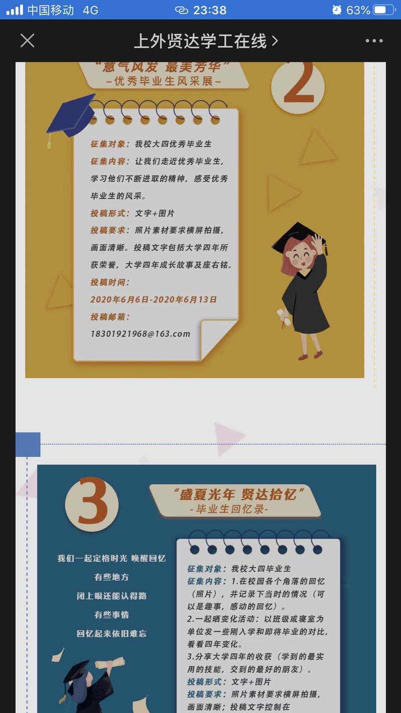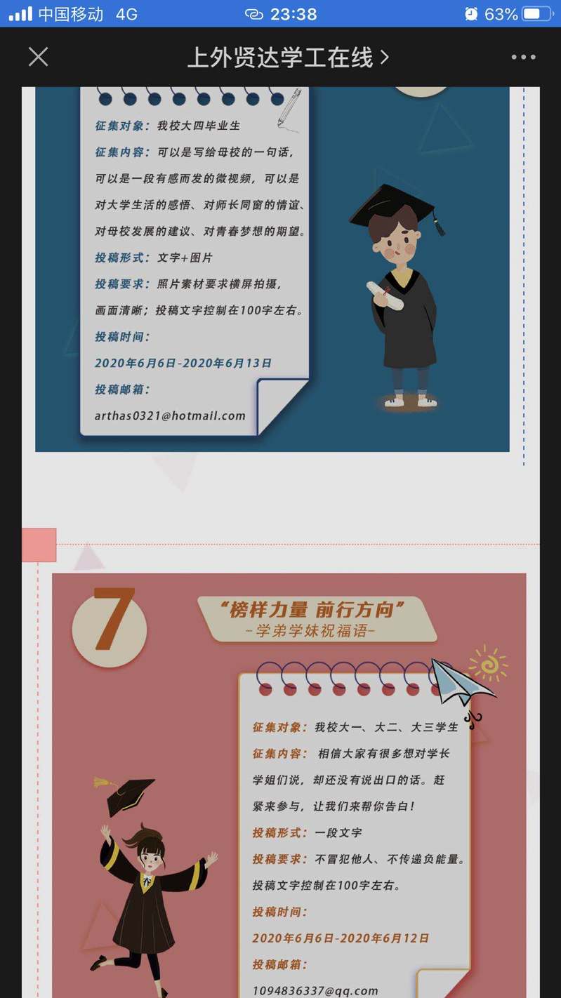 时光如梭,毕业季悄然而至。大学四年,满是值得回忆的青春。我院辅导员积极动员各年级学生为今年毕业生准备了这场不一样的“云毕业”系列活动:有大一至大三学弟学妹写给毕业生的祝福语;有大四毕业生对母校的感悟及期望;有毕业生对20级新生的寄语;有毕业生记录分享大学四年自己的变化与收获等一系列活动。今年的毕业生虽然未能和校园好好告别,但是却能用记忆抒发不舍,用照片回忆大学时光,继续助力梦想的青春之航。