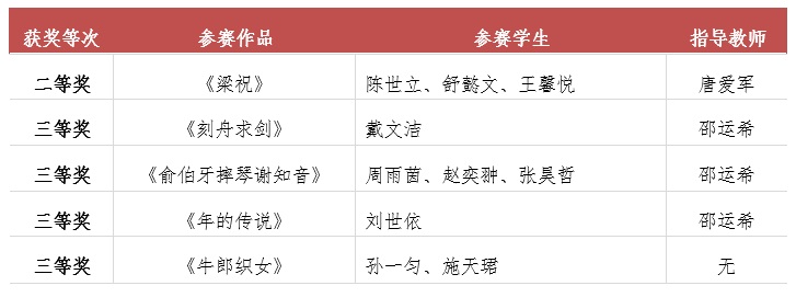 我校外语学院师生在本届大赛中取得了优异的成绩。我校在教师组比赛中摘得一等奖2组、二等奖1组、三等奖2组,在学生组比赛中赢得二等奖1组、三等奖4组,优秀指导教师奖2组。此外,我校还获得了大赛组委会颁发的优秀组织单位奖,可谓大获全胜,满载而归。