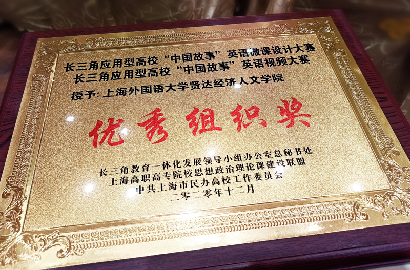 2021年1月8日,由长三角教育一体化发展领导小组办公室总秘书处、上海市高职高专思想政治理论建设联盟、民办高校党工委主办,上海震旦职业学院承办的长三角应用型高校“中国故事”英语联赛颁奖典礼暨展演活动在上海罗溪书院圆满落幕。我校夏骄雄书记等领导及获奖师生受邀参加本次活动。