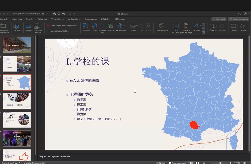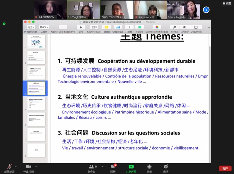 活动开始时,法方教师和我校法语教师分别对此次交流活动做了详细的介绍。随后,我校法语系学生代表孟瑶、张庆悦、张宇良、许韩卿等同学在分享环节中,用PPT和视频介绍了自己的法语学习生活以及课余活动,充分展示了贤达学子大学生活的积极心态和扎实的法语基本功底。