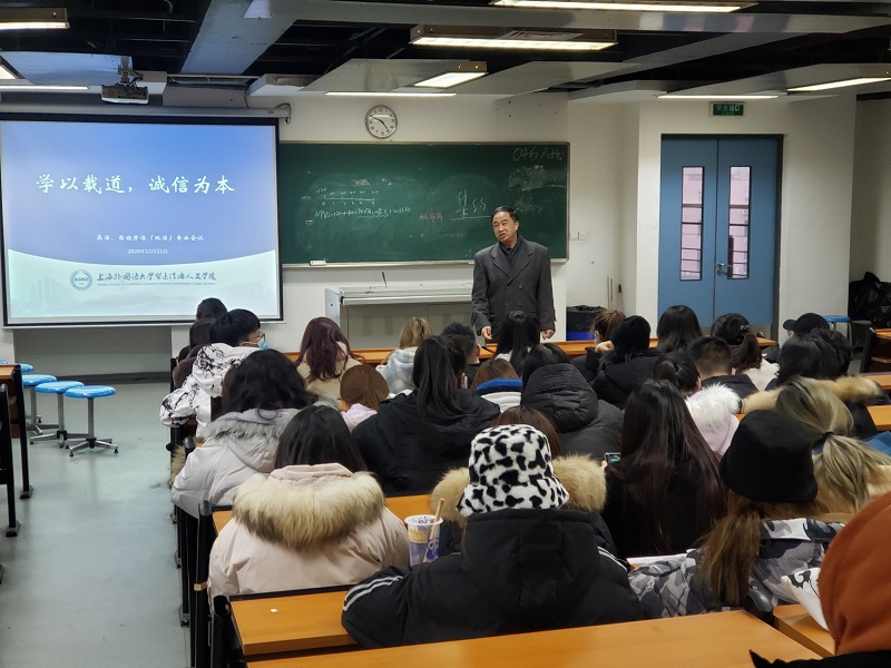 崇明校区主题班会:2020级新生于12月24日下午四点实施,由辅导员房丽珠老师主持,参会老师有外语学院党总支书记余其华老师和外语学院辅导员兼学工组长张华老师。