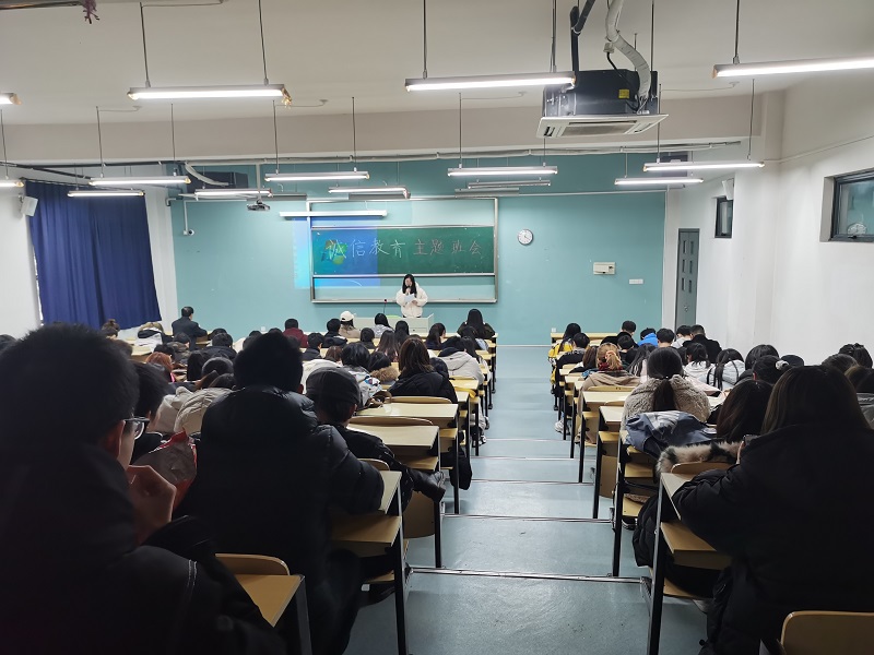 新年将至,期末临近,为了教育同学们树立诚信考试、注重安全卫生、文明做人的理念,以良好的精神面貌迎接即将到来的新年元旦和期末考试,2020年12月下旬,外语学院组织各年级学生全面开展“诚信、安全”主题班会教育活动,旨在教育学生诚信守道,诚信迎考,安全为本,杜绝宿舍楼内使用违规电器。此次主题班会教育活动,分别采取分时段、分校区展开实施。