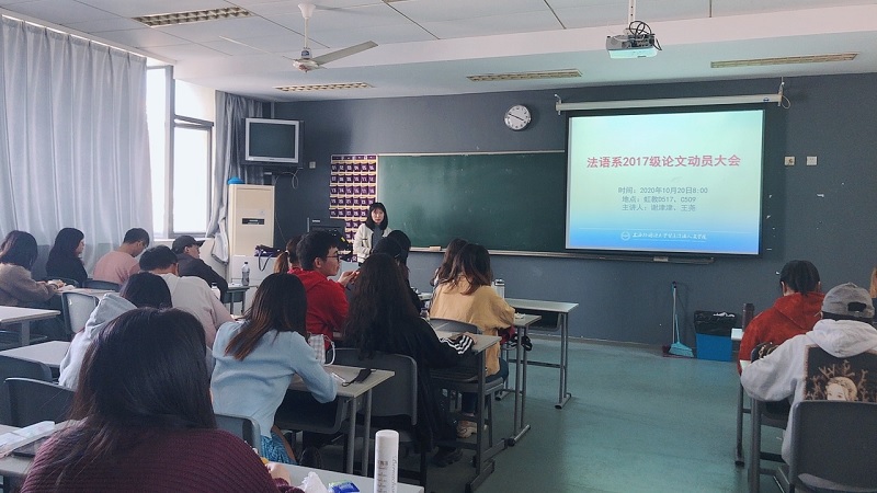 西语系:由系主任陈世媛老师对2017级大四学生进行了毕业论文动员,为学生讲解撰写毕业论文的相关知识,解答同学们的疑惑。
