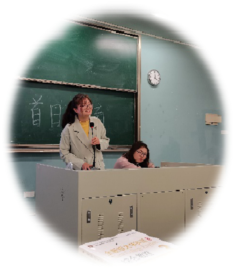 在首日教育活动中,大一、大二学生代表学习总结与经验交流深受同学们欢迎。有三位同学与大家一起分享了自己的学习成果,毫无保留地介绍了自己的学习方法和经验,分析了学习语言的技巧,探索了学习的基本规律,得到同学们的一致好评。