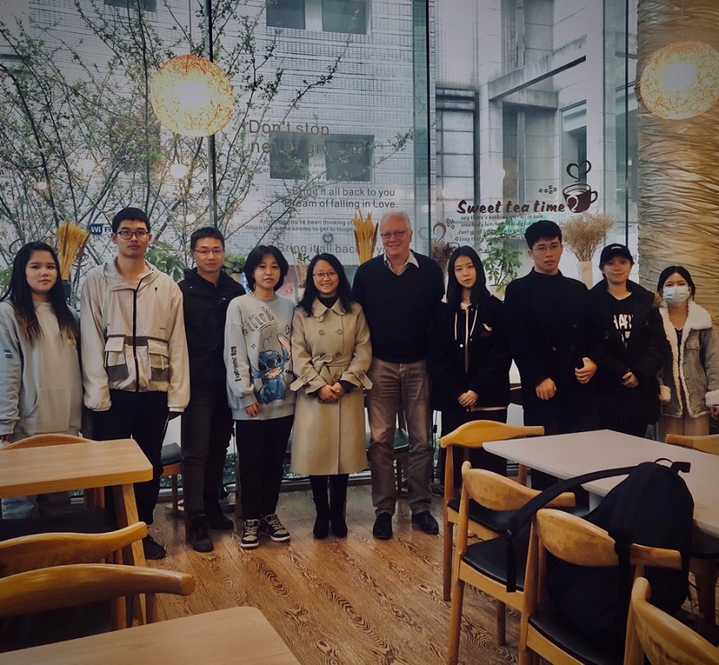 为了提升德语系学生的口语应用能力,激发同学们学习德语的积极热情, 2021年3月15日下午外语学院德语系在系主任高瑞霞老师的组织下,在虹口校园Bella咖啡厅举行师生交流茶话会。参加茶话会的有学校外事处的老师、18级德语专业部分学生,同时还邀请了外教老师Hartmut先生出席茶话会。