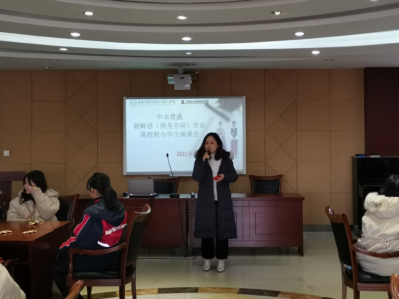 为进一步推进中本贯通工作,2021年1月5日,外语学院朝鲜语专业大三、大四六名优秀学生代表在系主任朴英花老师的带领下,前往上海工商外国语学校参加中本贯通朝鲜语(商务方向)高校学生联合座谈会。