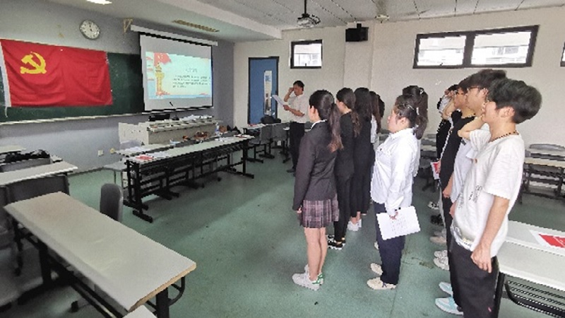 会议最后,外语学院党总支余其华书记带领全体党员进行宣誓,重温入党誓言,庆祝建党百年华诞。