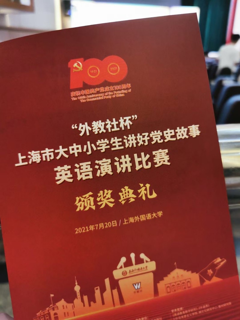 “外教社杯”上海市大中小学生讲好党史故事英语演讲比赛大学组三等奖