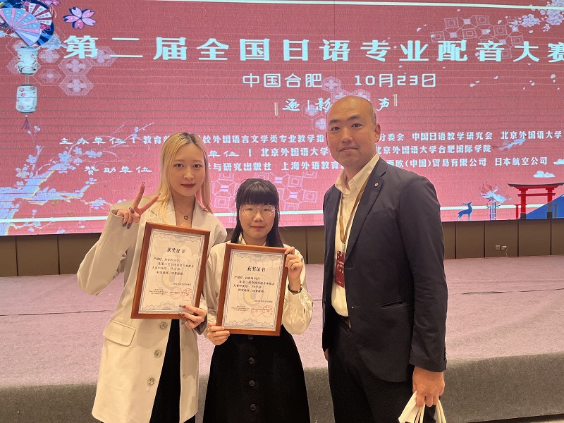 2021年10月23日,“第二届全国日语专业配音大赛”决赛在安徽合肥举行。我校外语学院日语系2018级林资纳同学和2019级严懿婷同学获得动漫组特等奖。