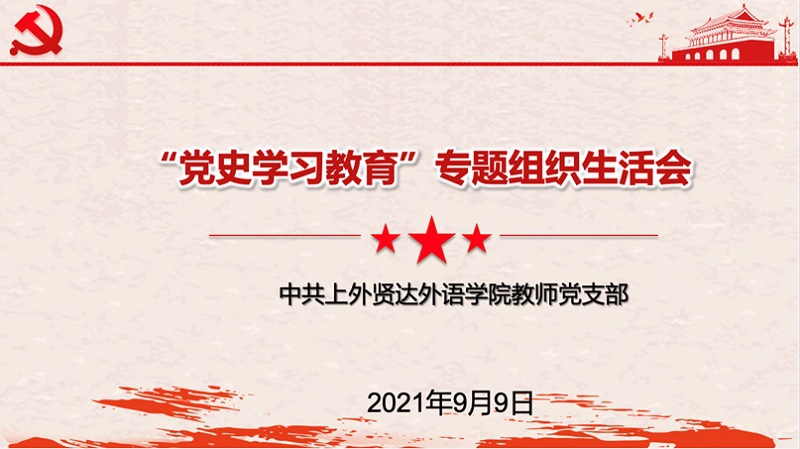 为了学好党史,充分吸收政治营养,修炼党性,近期外语学院党总支所属的教师党支部和学生党支部分别于9月6日、9月9日召开“党史学习教育”专题组织生活会。组织生活会分别由教师党支部书记蔡懿焱、学生党支部书记孙琳主持,外语学院党总支余其华书记参会出席。