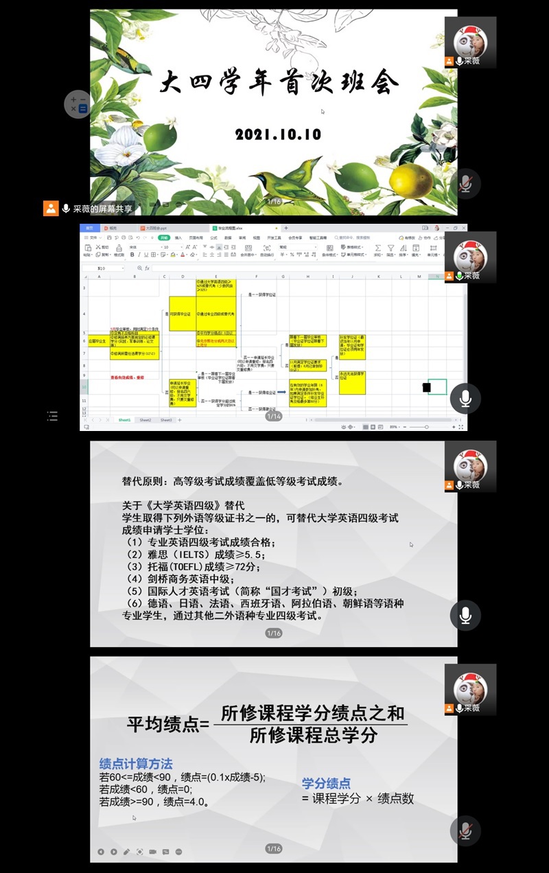 新学期如何抓好学工工作,外语学院有了新的举措。2021年10月10日,18级德语、法语、阿语专业召开了大四学年首次线上班会,班会由张采薇老师主讲,班会涉及基础管理、学生学业、实习就业等内容。