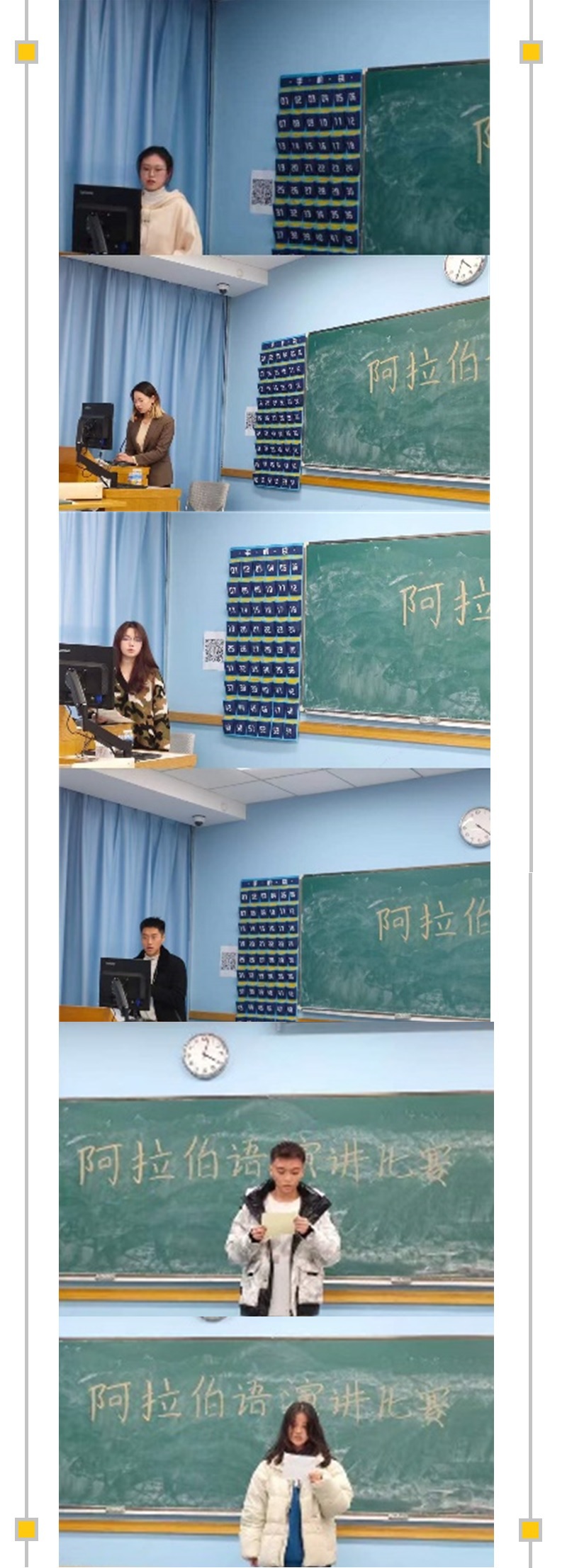为了掀起学习热潮,提升同学们对专业的兴趣,外语学院阿拉伯语系以“梦想”为主题的演讲比赛于12月8日拉开帷幕。本次比赛分为高年级组和低年级组,为保证比赛顺利开展,同学们两周前就开始准备。阿语系的教师们也非常重视。经系主任郑翠平老师的组织协调,郑翠平、姚淑燕、张文艳三名老师共同担任评委和颁奖嘉宾,张文艳老师担任本次比赛主持人。