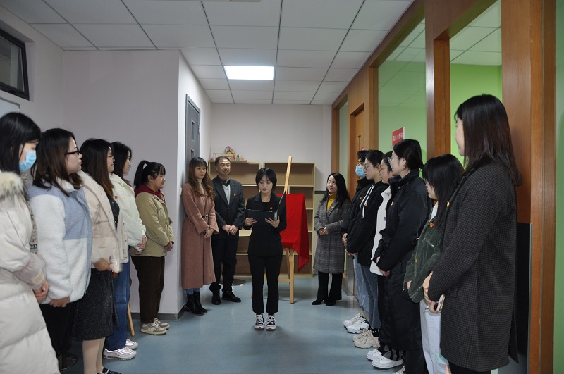 2021年12月14日,外语学院党总支在崇明校区综合楼519隆重举行“双带头人”蔡懿焱工作室揭牌仪式。参加揭牌仪式的有:外语学院党总支余其华书记、学生党支部孙琳书记、全体党员辅导员和部分学生党员。揭牌仪式由党员工作站站长王艺璇同志主持。