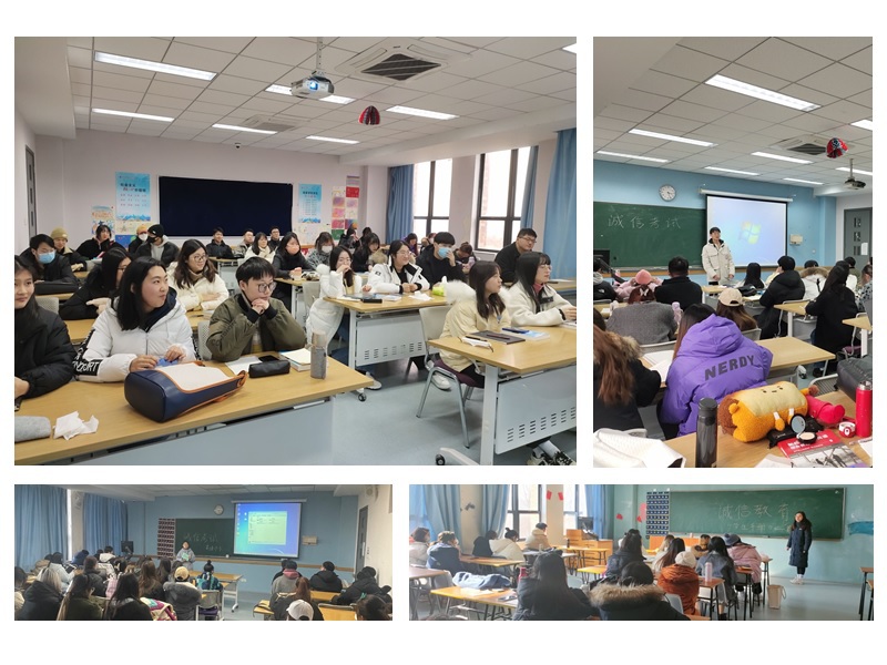 为树立良好的考风考纪,倡导诚实做人的新风尚,在期末考试临近之际,2022年12月28日,2019级英德朝专业(含专升本)全体学生在辅导员严丹丹老师的组织下,在崇明校区综合楼分班级召开安全诚信教育主题班会。