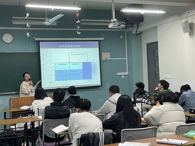 本次讲座对正在学习法语语音的同学非常有启发,根据同学们在班会上的表现,他们对法国留学项目以及在法学习的情况都非常感兴趣,同学们对自己关心的问题、感兴趣的问题频繁提问,师生互动良好,整个讲座氛围特别融洽,尤其是在介绍赴法留学准备工作环节,同学们的提问异常踊跃,兴趣浓厚。