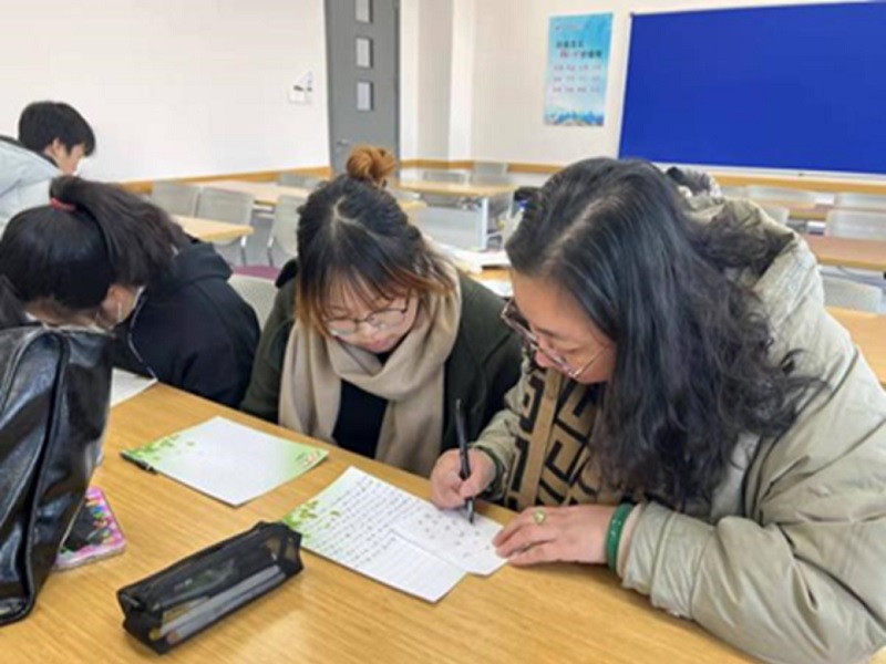 在老师们的指导下,同学们专心致志地准备日语书法大赛,老师们感觉到一丝的欣慰。