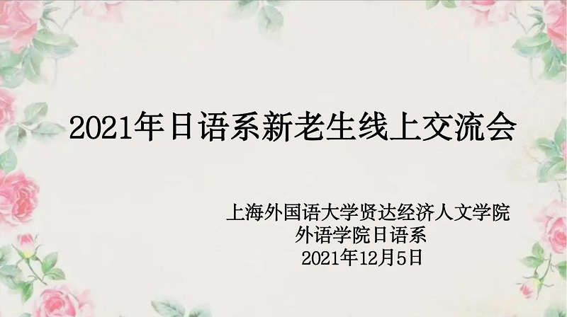 2021年12月5日,在系主任邓俊玲老师的组织安排下,2021级日语系全体新生在腾讯会议上举行了新老生交流会。本次会议邀请了在日本五大商社之一丸红就职的傅亦卿同学、考取日本著名同志社大学研究生的袁昕同学和获得第二届全国配音大赛动漫组特等奖的林资纳同学分别给日语系全体新生分享她们的学习与生活经验。