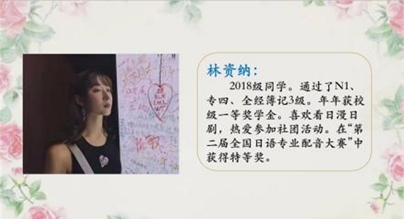 袁昕学姐与林资纳学姐也相继对21级日语系新生寄语,祝福同学们努力学习开心生活。