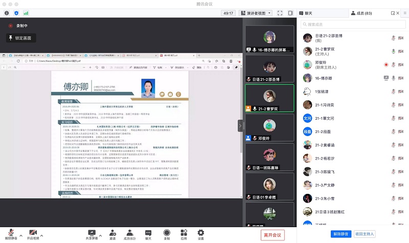 邀请到的三位学姐分别从日语学习、专业证书考试、赴日交流学习、日企就职等方面分享自己的经验,并在线解答同学们感兴趣的问题。