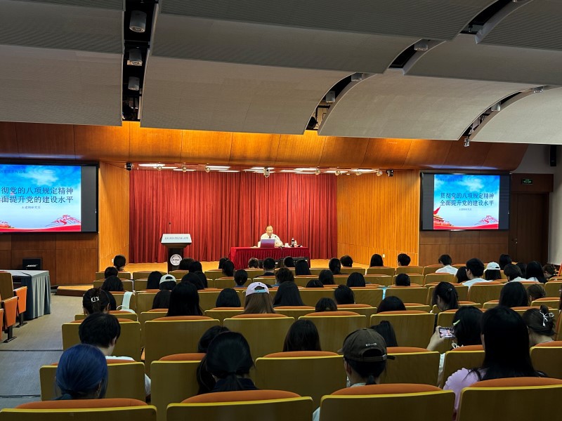 为筑牢全体师生党员思想防线,推动作风建设走深走实,6月6日下午,外语学院党总支于崇明校区同传厅开展“贯彻中央八项规定精神,全面提升党的建设水平”专题党课讲座。本次讲座由王建刚研究员主讲,外语学院全体师生党员、发展对象、入党积极分子参加。