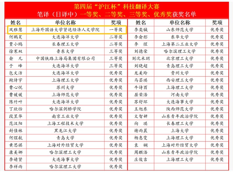 10月18日,“科技创新与翻译研究论坛暨第四届‘沪江杯’科技翻译大赛颁奖典礼”在上海理工大学外语学院举行。本届大赛规模盛大,影响力广泛,共吸引来自全球242所高校及企事业单位的2192名选手踊跃报名参赛。大赛评审过程严谨规范,由评审委员会组织的35位资深专家,秉持公平、公正原则,通过线上初评、复评及线上笔译总评三轮匿名评审,最终评选出365名优秀获奖者。